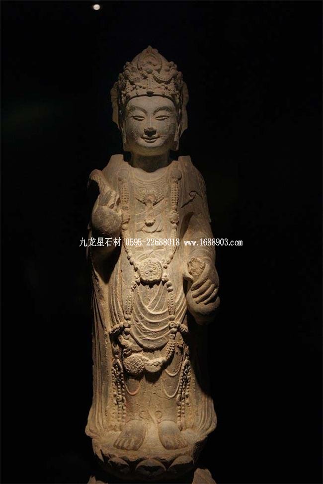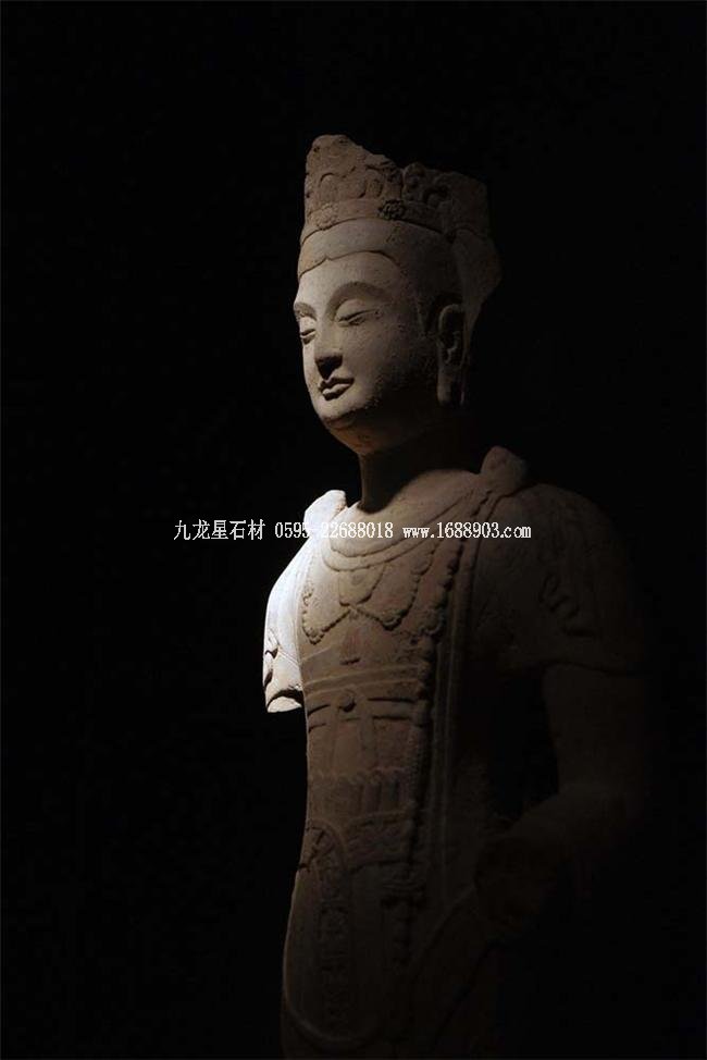 北魏、北齊時期,佛像雕刻藝術(shù)趨于巔峰極致之境界。北魏佛像造型挺拔秀美,細(xì)腰寬背,衣紋是富于裝飾的淺刻。北齊造像多為面型豐腴,衣紋簡潔,服薄貼體,整體平潤光潔,與面部寧靜安祥的表情和諧一致。這類疏簡淳潤的佛像造像,無論從光潔的肌體或平滑衣物里,似乎都能感覺到內(nèi)部筋肉的輕微變化。潤澤的體面與舒緩下垂的線條,使形象在疏簡平淡中流露出內(nèi)在的氣質(zhì)。