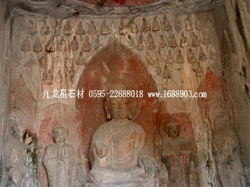 龍門石窟歷經700年開鑿,現(xiàn)存窟龕2345個,佛像10萬尊,碑刻題記2800塊,佛塔60多座,均為我國石窟之最。因此,可以說,佛教產生于印度,佛教石窟也源于印度,但將其推向藝術頂峰的則是中國。雖然許多國家也時興過雕刻佛像,但目前,孤陋寡聞的筆者還沒有聽說過別的比較有名的佛教石窟和大的石雕佛像。柬埔寨有個吳哥窟,好象也不是石雕佛像,只是前些年聽說過阿富汗的巴米揚大佛,可惜于91年被塔利班那幫孫子用大炮給轟了,全世界為之心痛了好些日子。因此,說龍門石窟是佛教圣地、藝術寶庫,是絕對不含糊的,當之無愧,名實相符。