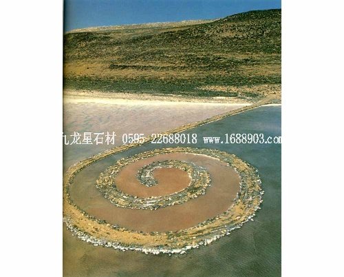雕塑家羅伯持·史密森以最有震撼力的方式表達(dá)了他的這種天才藝術(shù)家思想,在美國猶他州偏遠(yuǎn)的大鹽湖筑造了一個名為《螺旋防波堤》的直徑為160英尺、螺旋長1500英尺的巨大旋轉(zhuǎn)空間。他借助大型機械,用當(dāng)?shù)氐暮谏鋷r石、以堆積的這種松散方式塑造了他和大鹽湖的偉大傳奇。