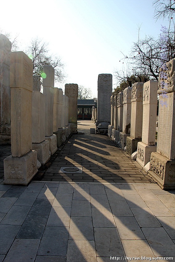 清代石享堂,還有造型獨特的納蘭性德夫人盧氏的墓志,有《詒晉齋》、《敬和堂》等法貼及名家書法刻石,這里可謂北京石刻的薈萃之地,堪稱北京碑林,這里用北京石刻的瑰寶,鐫寫了一部北京石刻文化史! 石刻館室內(nèi)廳展出有“真覺寺資料陳列”、“人與石——石刻簡史陳列”、“北京地區(qū)石刻、石刻露天陳列”。“露天陳列”由石刻石雕、功德碑、墓志銘、書法碑貼、寺廟碑、會館碑等幾部分組成,從不同角度向觀眾展示了北京地區(qū)精美的石雕藝術(shù)。