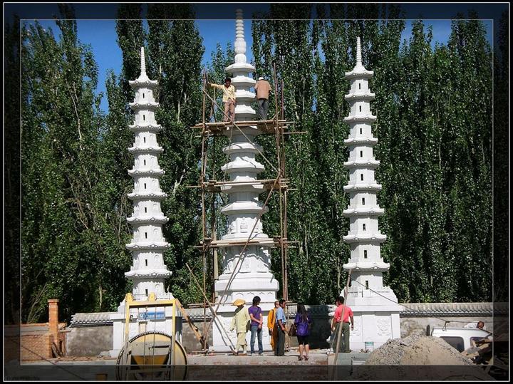 麒麟石雕 麒麟是中華民族自古相傳的吉祥瑞獸,并不是佛教的傳統(tǒng)造像題材,其形似鹿,頭上一只角,全身披鱗甲,尾像牛尾,傳說它不踩任何活物,是“設武備而不用”的有德性的“仁獸”,為美德的象征,與龍、鳳、龜合為“四靈”。。龍、鳳是我國古代勞動人民創(chuàng)造的理想動物形象,契丹族對龍似乎有著特殊的愛好,龍紋亦反復出現(xiàn)于遼貴族的冠飾、服飾及佛塔裝飾中,與有遼一代相始終。羊、馬、鹿、雁等是契丹畜牧狩獵業(yè)代表性動物,如藥師塔上的鹿、羊浮雕,其上的鹿前蹄落地,后蹄揚起,作奔馳狀;雙羊浮雕,兩只羊雙角相抵,領下有一縷長須,肢短體碩,似從高處躍下,遼塔上的動物造型體現(xiàn)了理想化與現(xiàn)實化的結合。