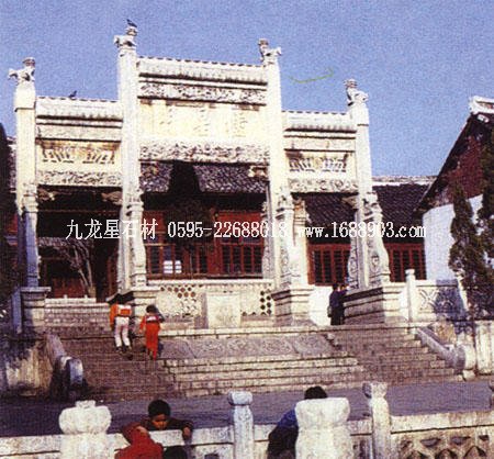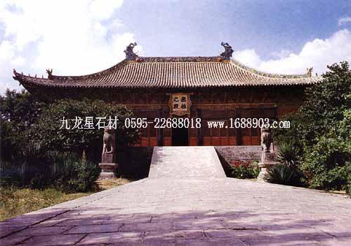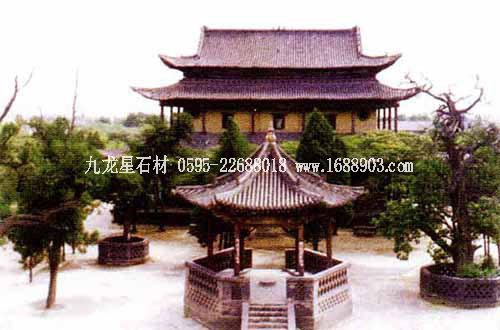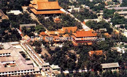 孔廟位于山東省曲阜市南門內(nèi),是歷代祭祀孔子的廟宇,建筑規(guī)模宏大,雄偉壯麗。其平面呈長方形,總面積327.5畝,南北長1120米。整個孔廟的建筑群以中軸線貫穿,左右對稱,布局嚴謹,共有九進院落。全廟共有五殿、一祠、一閣、一壇、兩堂、十七碑亭、五十三門坊,共計有殿廡四百六十六間??讖R內(nèi)最為著名的建筑有:欞星門、二門、奎文閣、杏壇、大成殿、寢殿、圣跡堂、詩禮堂等。杏壇,傳為孔子講學處,壇旁一株古檜,稱“先師手植檜”;大成殿為孔廟的主殿,殿內(nèi)正中奉祀孔子塑像,兩旁為4配和12哲的塑像;東西廡殿原供孔子弟子及儒家歷代先賢;故宅井后的“魯壁”為秦始皇焚書坑儒時,孔子第九代孫孔鮒收藏《尚書》、《禮記》、《論語》、《孝經(jīng)》等書的夾墻。孔廟與孔府、孔林并稱“三孔”,是中國現(xiàn)存最大的四大古建筑群之一。