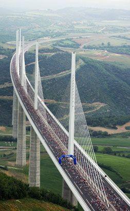 如果擔(dān)心高度過高,你可能不會(huì)選擇穿越法國(guó)南部的米約大橋,這座大橋跨越塔恩河谷至米約地區(qū),是當(dāng)今世界上最高的車載交通大橋,其最高點(diǎn)距離地面1125英尺。