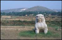 藏王墓位于西藏自治區(qū)瓊結(jié)縣,是公元七——九世紀(jì)歷代吐蕃贊普的墓葬群,現(xiàn)存石獅一對和石碑、柱等。造型除受中原影響外,樣式特征亦帶有波斯風(fēng)格影響。