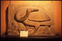 直接表現(xiàn)歌功頌德內(nèi)容的石雕還有“昭陵六駿”浮雕?!傲E”為“又刻石為常所乘破敵馬六匹于闕下”。(《唐會(huì)要?卷二十》)的六件作品。宋游師雄題昭陵圖云:“先葬文德皇后長孫氏,當(dāng)時(shí)陪葬之盛與夫刻蕃酋之像、琢六駿之像以旌武功,列于北闕,,(,“。“六駿”內(nèi)容完全是夸示武功之作。此種表現(xiàn)形式在后來各陵中演變?yōu)轳匄B浮雕,不再停留于直接夸示武功的意義而上升到以祥瑞禽鳥顯示帝王英明的象征意義。駝鳥在當(dāng)時(shí)被視為“能瞰鋼鐵”的異鳥,高宗認(rèn)為駝鳥的來獻(xiàn)是“以太宗懷遠(yuǎn)所致”,“乃刻像于陵之內(nèi)”。(《太平御覽?卷九一四》)與駝鳥相類似的內(nèi)容還有犀牛,獻(xiàn)陵石犀刻有“高祖懷遠(yuǎn)之德”字樣,明確了其設(shè)置寓意。
