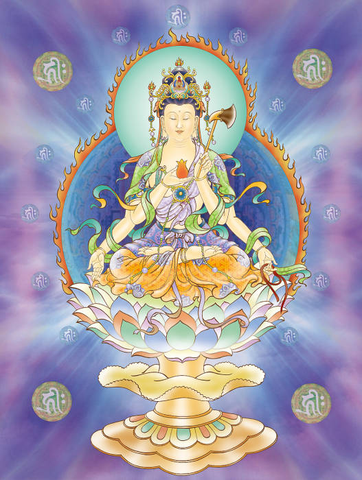 四、圓光觀音 無(wú)垢圓光觀世音 性凈明露常寂光 能伏眾生災(zāi)風(fēng)火 普明圓照遍十方