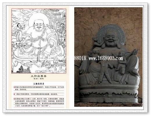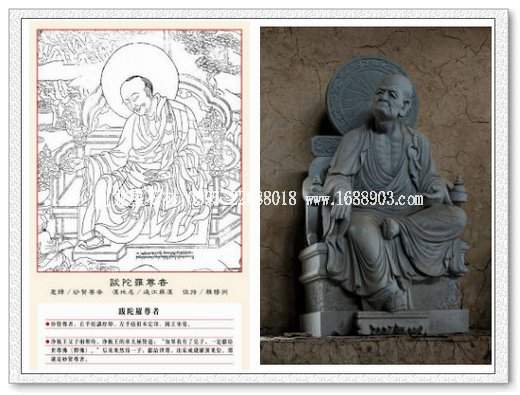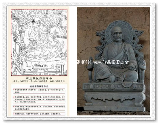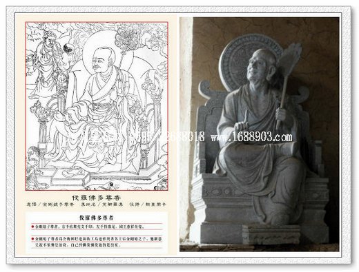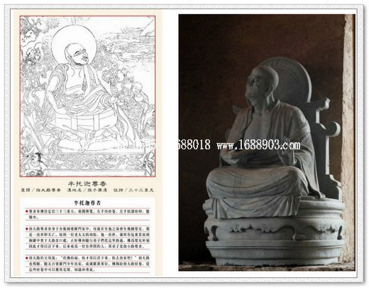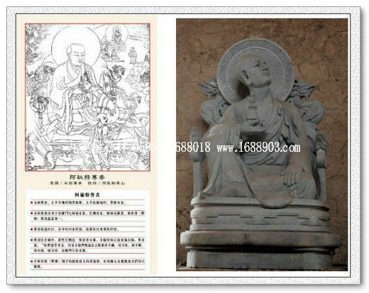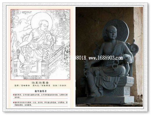 這些由兩米多高整塊青石雕刻的十八尊羅漢單人像,是尊貴的嘎瑪仁波切依據(jù)德格印經院的木刻稿本,請福建世代為宮廷雕刻的匠師雕刻的。為此嘎瑪仁波切曾數(shù)十次親自到福建的工場,指導匠師們依據(jù)藏地的風格來雕刻,慢慢調教工匠的習慣和造型的漢藏差異。欣賞的這些已完成,與漢地羅漢風格迥異的羅漢像,你會發(fā)現(xiàn)與漢地羅漢相比,藏地的羅漢形象沒有被金剛化。因為羅漢都是長老級別的,年歲最大,資歷最老的和尚,才被尊為羅漢。這些羅漢形象更寂靜調柔。內在的修為,在頭部五官神態(tài)精妙地刻劃中,濃濃淡淡隨著光影空氣的顫動,立體地顯露出來。或寧神沉寂,或幽思默然,或目視遠方,或瞇眼看著你,神態(tài)內斂,表情微妙。眉眼、嘴角的線條中蘊含著慈悲、包容、澹然的氣息,仿佛有生命一樣令人感動。一尊一尊,或國王、或菩薩、或英雄、或盤腿的坐姿,以各種手勢,或持物端坐于法座上,這些細節(jié)完全與漢地風格不同。十八尊藏式羅漢的雕刻技藝和藝術表現(xiàn)力,完全可以說是現(xiàn)今中國石雕羅漢像的最高成就,絕無僅有。