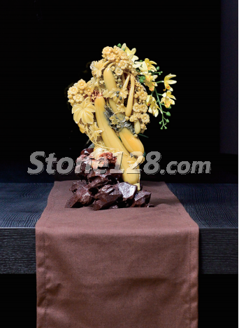 苦瓜雖然味苦,卻有著清熱解毒之功效。這件以苦瓜為主題的石雕作品,造型優(yōu)雅,色彩溫暖,質(zhì)感潤澤,象征著勤儉節(jié)約的生活態(tài)度,吃苦精進(jìn)的創(chuàng)業(yè)精神。