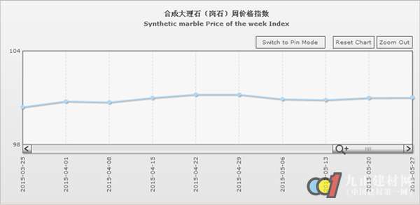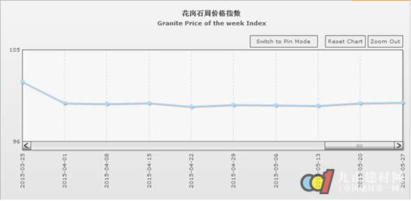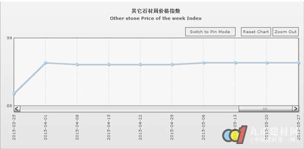 據(jù)“中國(guó)·水頭石材指數(shù)”系統(tǒng)監(jiān)測(cè),20150527期石材周價(jià)格指數(shù)收?qǐng)?bào)于98.71點(diǎn),環(huán)比略上浮0.08點(diǎn),上浮約0.08%。本周石材價(jià)格指數(shù)延續(xù)上周穩(wěn)中微升的趨勢(shì)、繼續(xù)微幅推升,其中其他石材類價(jià)格環(huán)比持平外,大理石、花崗石、合成大理石類價(jià)格均有所回升。大部分品類價(jià)格變化仍較穩(wěn)定,部分品種價(jià)格因市場(chǎng)需求有所增加及板面質(zhì)量差異小幅上揚(yáng)。